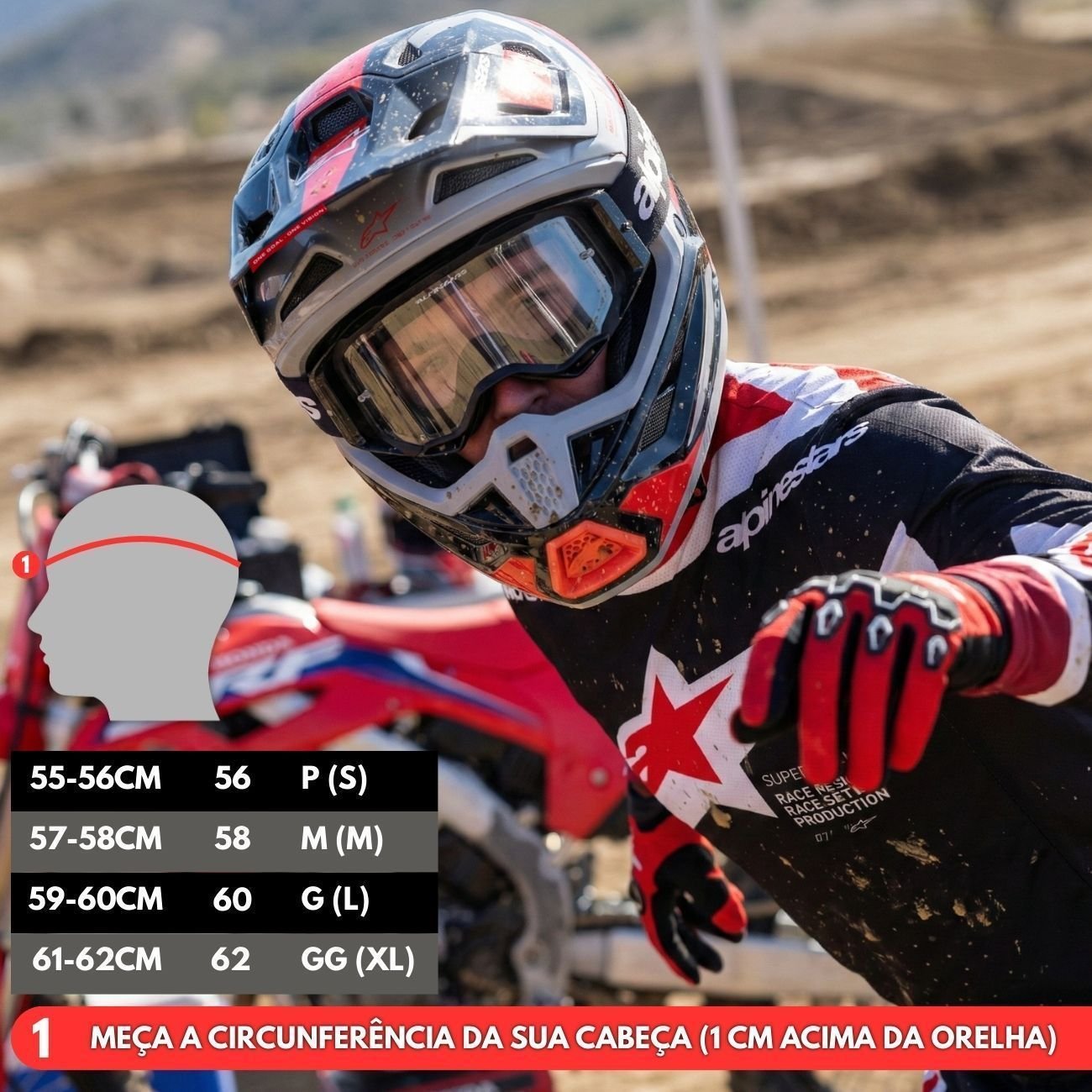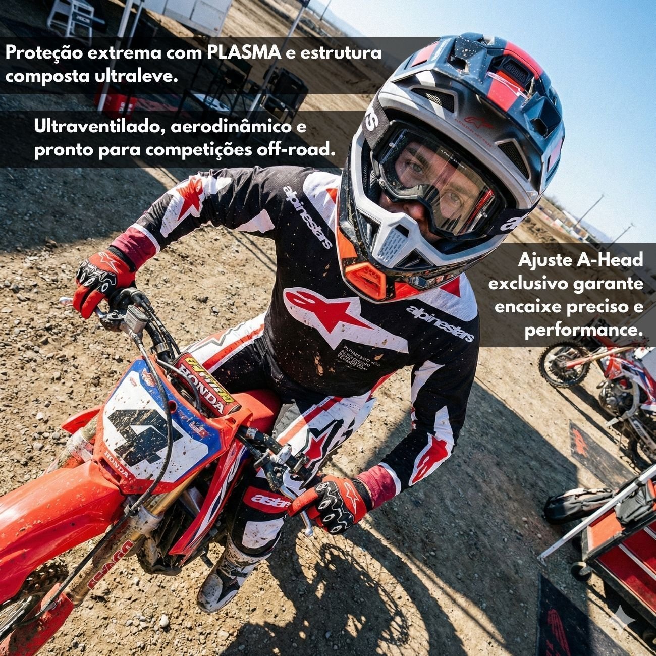 Tecnologia A-Head: O sistema de ajuste A-Head patenteado da Alpinestars permite o ajuste fácil do ângulo e da altura em que o capacete se posiciona na cabeça, para um encaixe perfeito e ideal para o desempenho.