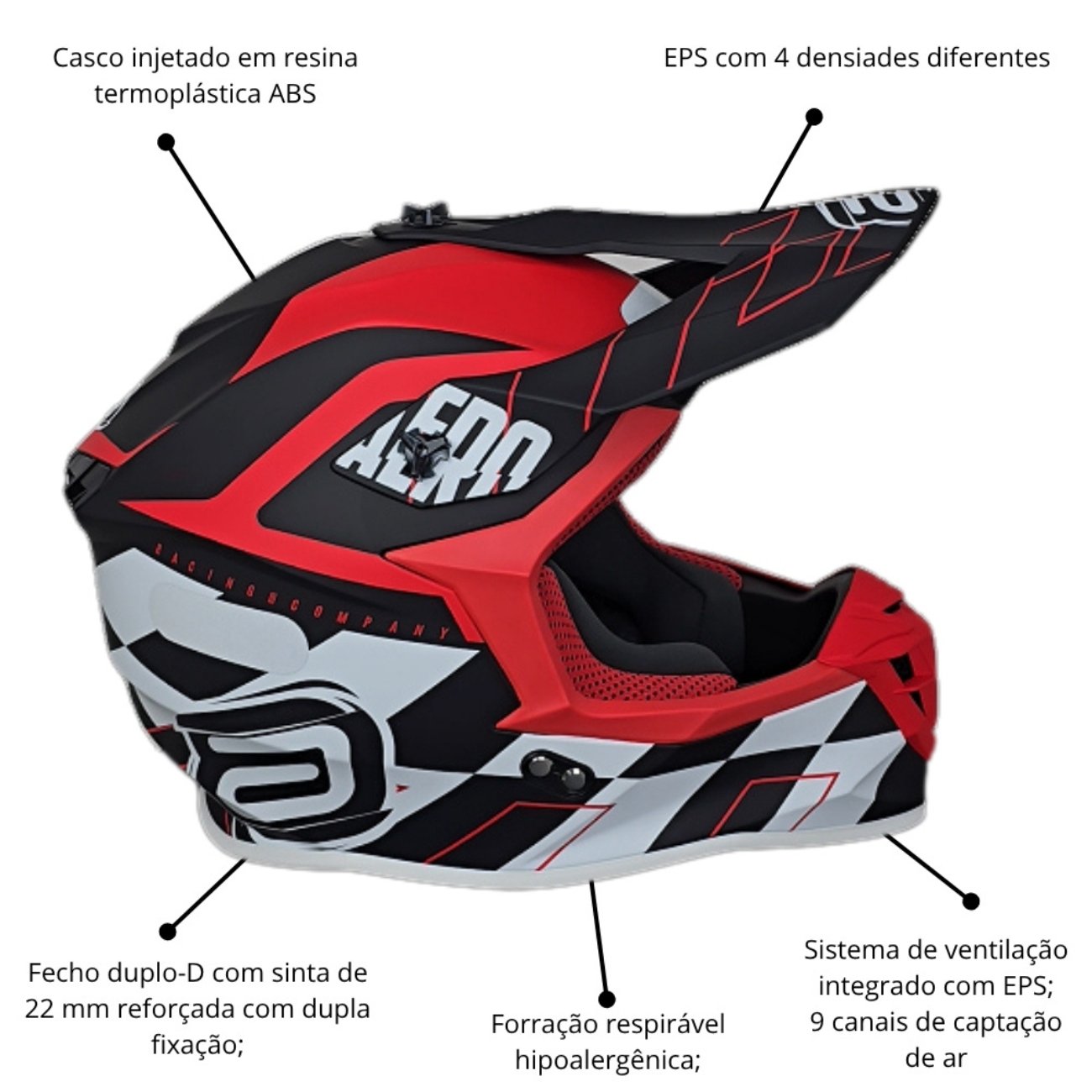 Desenvolvido em resina termoplástica ABS, oferece alta resistência com baixo peso, ideal para os terrenos mais exigentes do off-road.