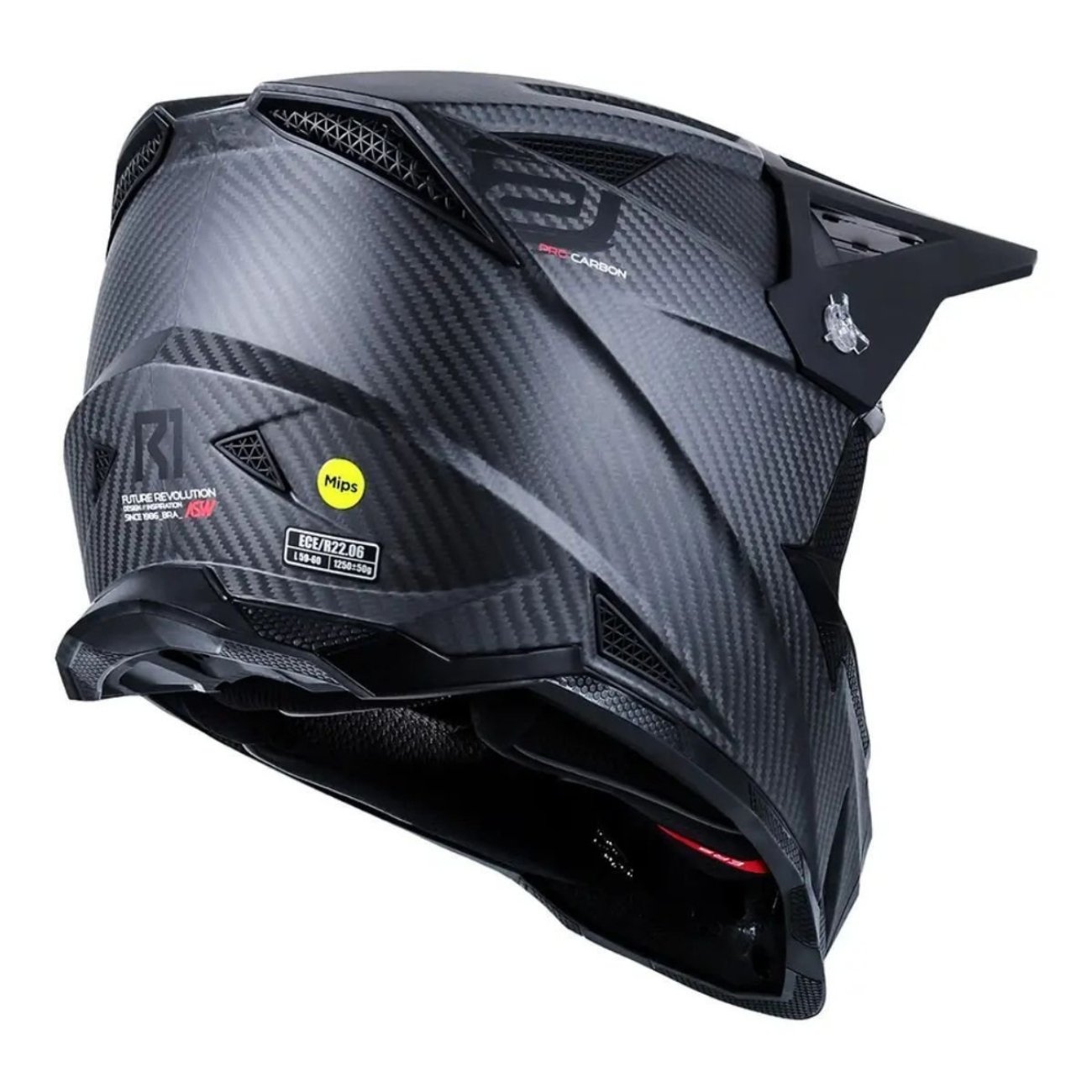 O capacete ASW R1 Pro Carbon representa o que há de mais avançado em segurança, tecnologia e conforto para pilotos de motocross e trilha. Desenvolvido ao longo de quatro décadas de expertise e rigorosos testes com os melhores pilotos brasileiros, este modelo integra a tecnologia europeia MIPS, reconhecida mundialmente pela sua eficiência na redução dos impactos rotacionais, oferecendo um nível de proteção superior.