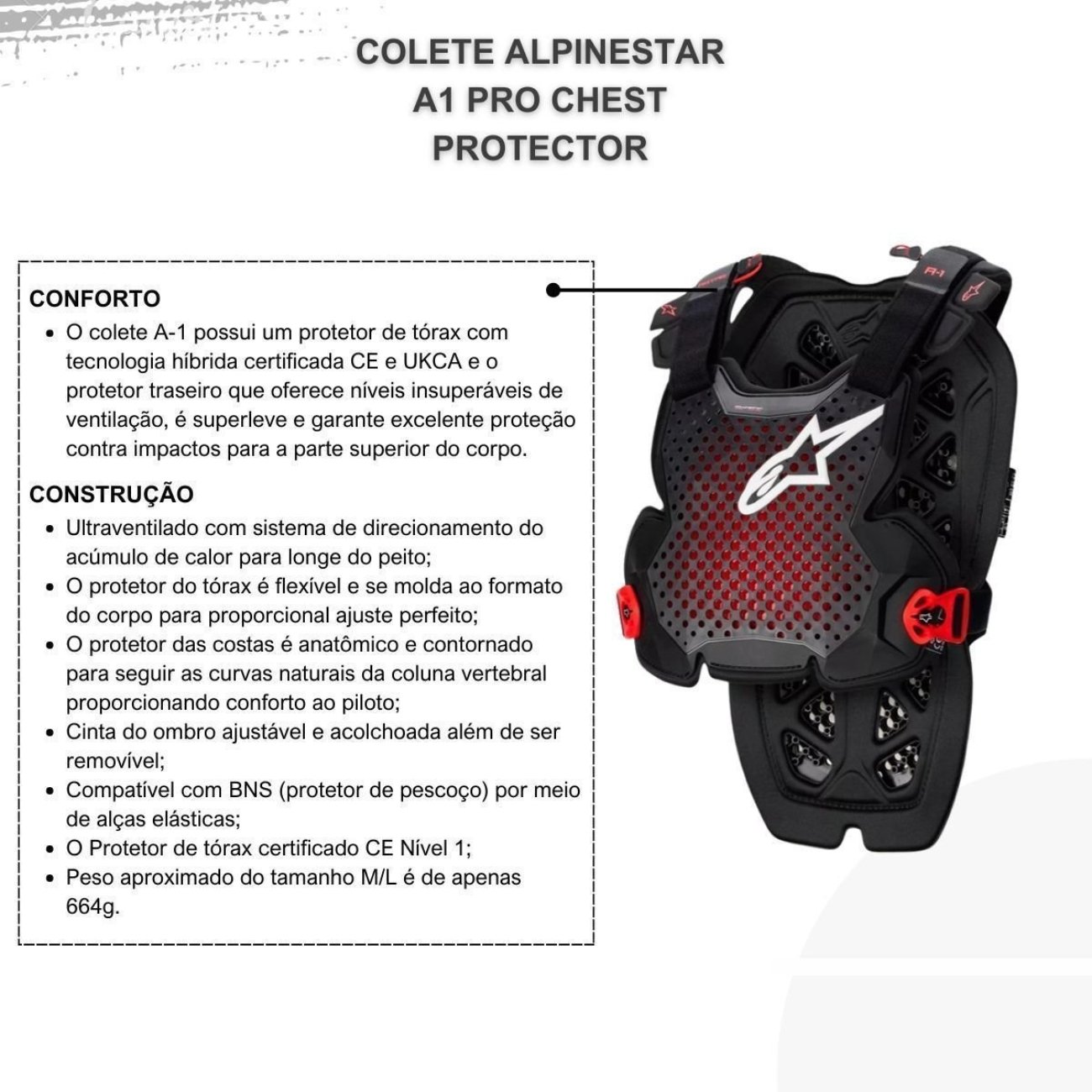 Colete Alpinestars A1 Pro Chest Protector Anthracite Preto Vermelho