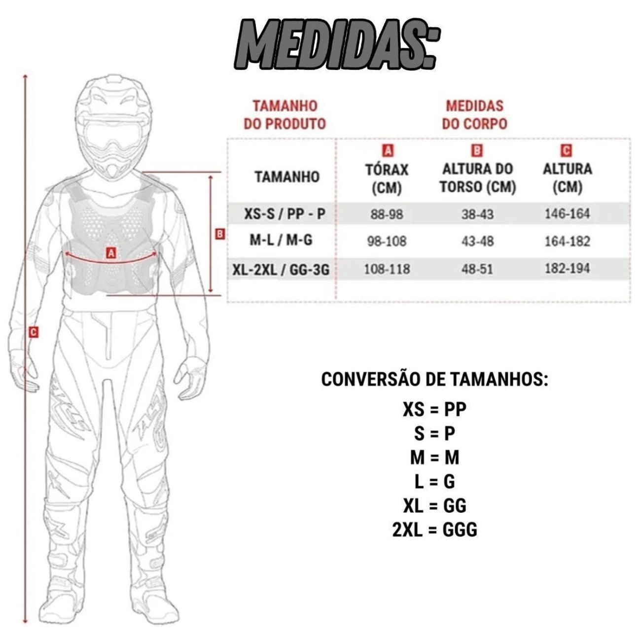 Protetor de tórax flexível: Se adapta perfeitamente ao formato do corpo para um ajuste confortável e seguro.