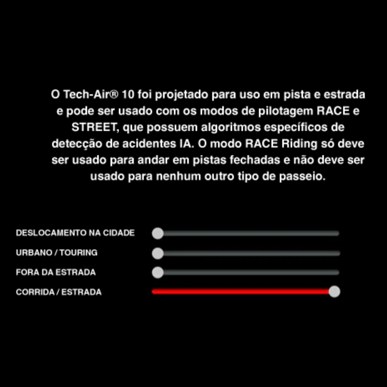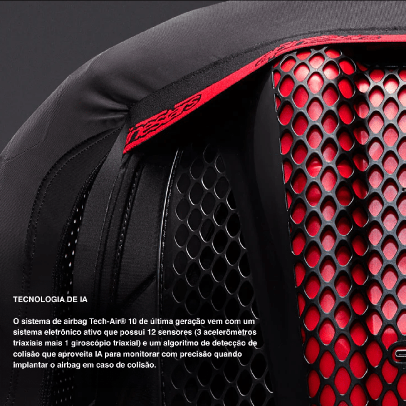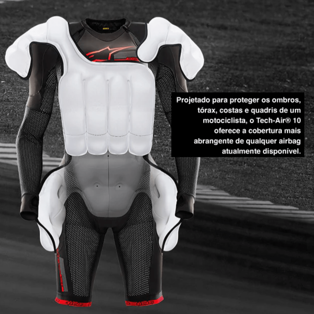O Tech-Air® 10 é o sistema de airbag eletrônico mais avançado da Alpinestars, desenvolvido com base em décadas de pesquisa e uso profissional nas pistas da MotoGP. Projetado para oferecer a maior cobertura de proteção do mercado, ele protege ombros, peito, costas e quadris, sendo ideal para uso em pista e estrada.