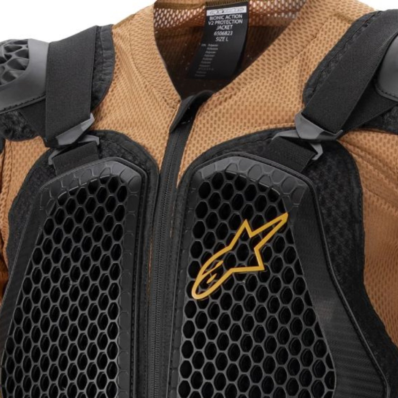 Colete Jaqueta Alpinestars Bionic Action V2 Areia/Preto – Proteção Ultraleve com Mobilidade Total