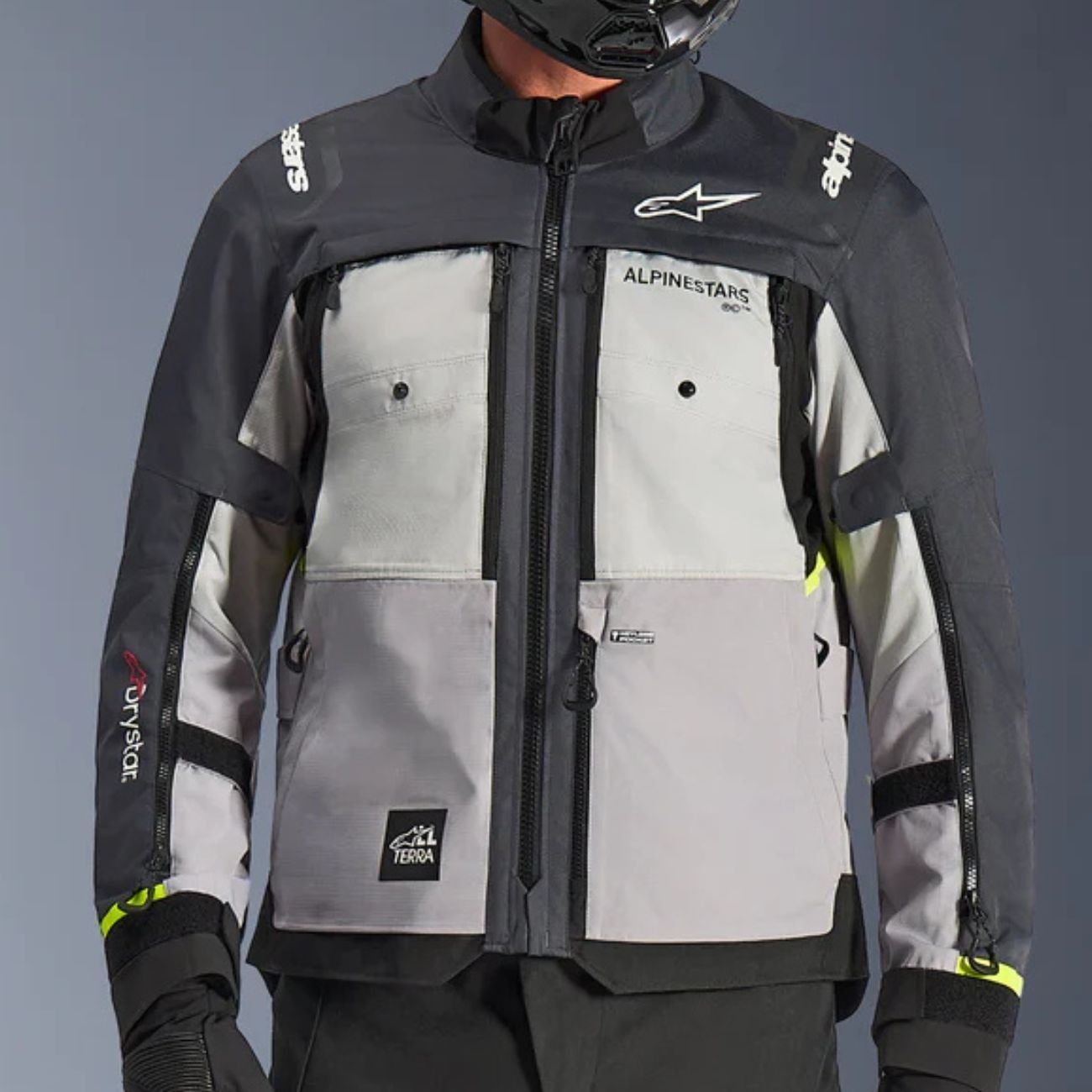 O grande diferencial deste modelo é o seu sistema de ventilação configurável, composto por grandes painéis com zíper no peito, costas e aberturas generosas nos braços, garantindo fluxo de ar intenso nos dias de calor. Para enfrentar a chuva e o vento, conta com a camada Drystar removível, que oferece impermeabilidade de 7.000 mm e alta respirabilidade (15.000 g/m²/24h), podendo ser utilizada tanto por baixo quanto por cima da jaqueta principal.