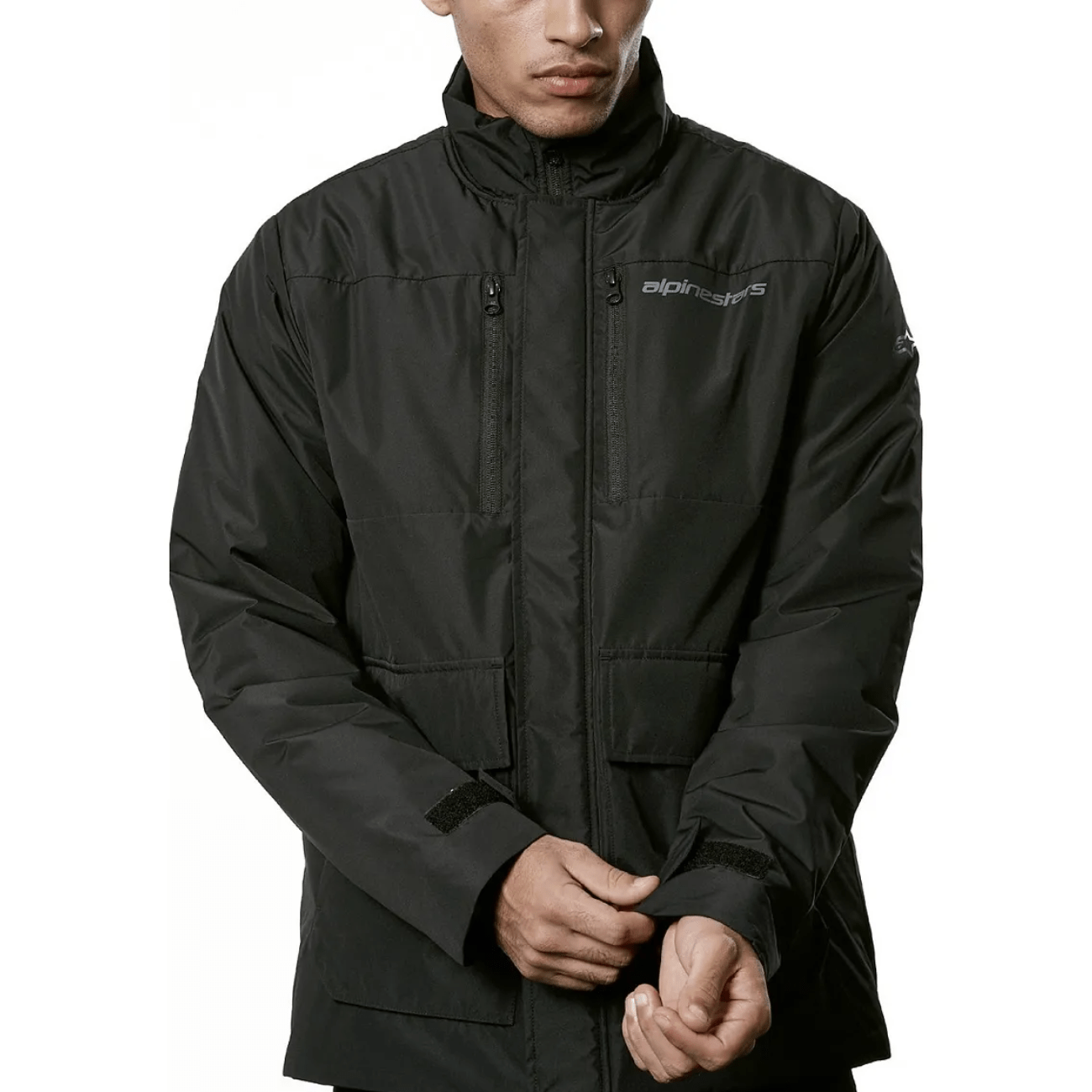 • Fechamento frontal com zíper e fechos magnéticos para proteção contra vento;