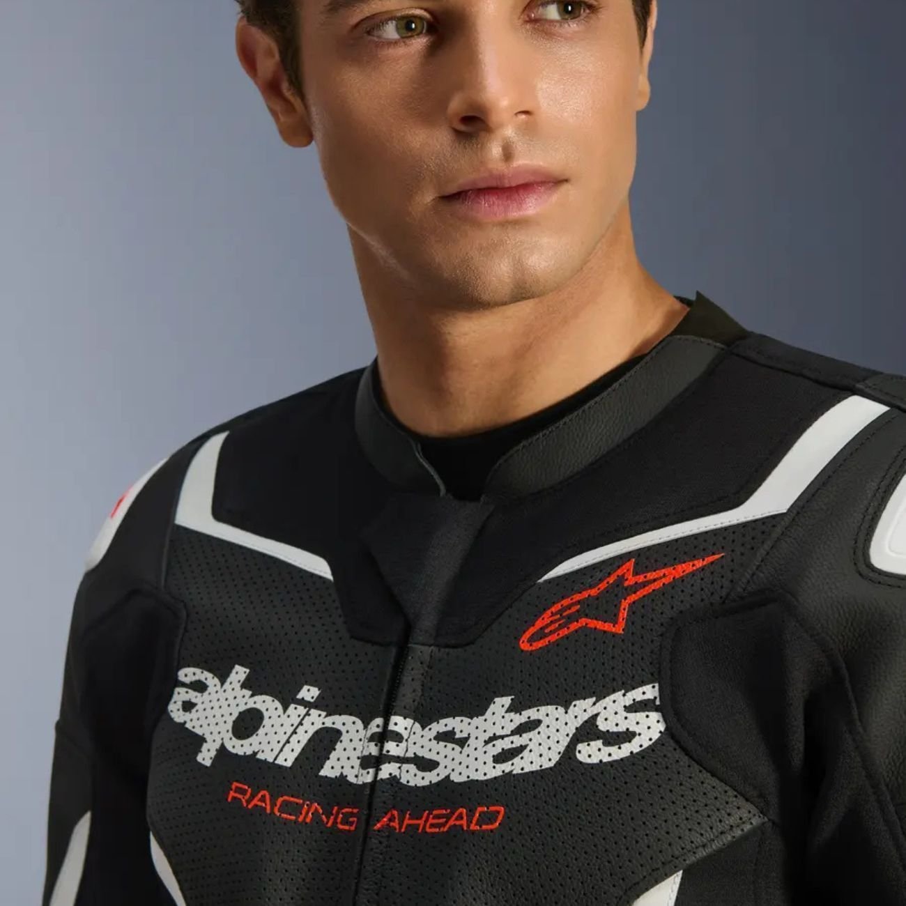 A jaqueta de couro GP Force V2 Airflow possui perfurações versáteis, otimizada para pilotagem em motos esportivas e naked. Construída em couro bovino macio de alta qualidade, oferece resistência incomparável à abrasão e rasgos.