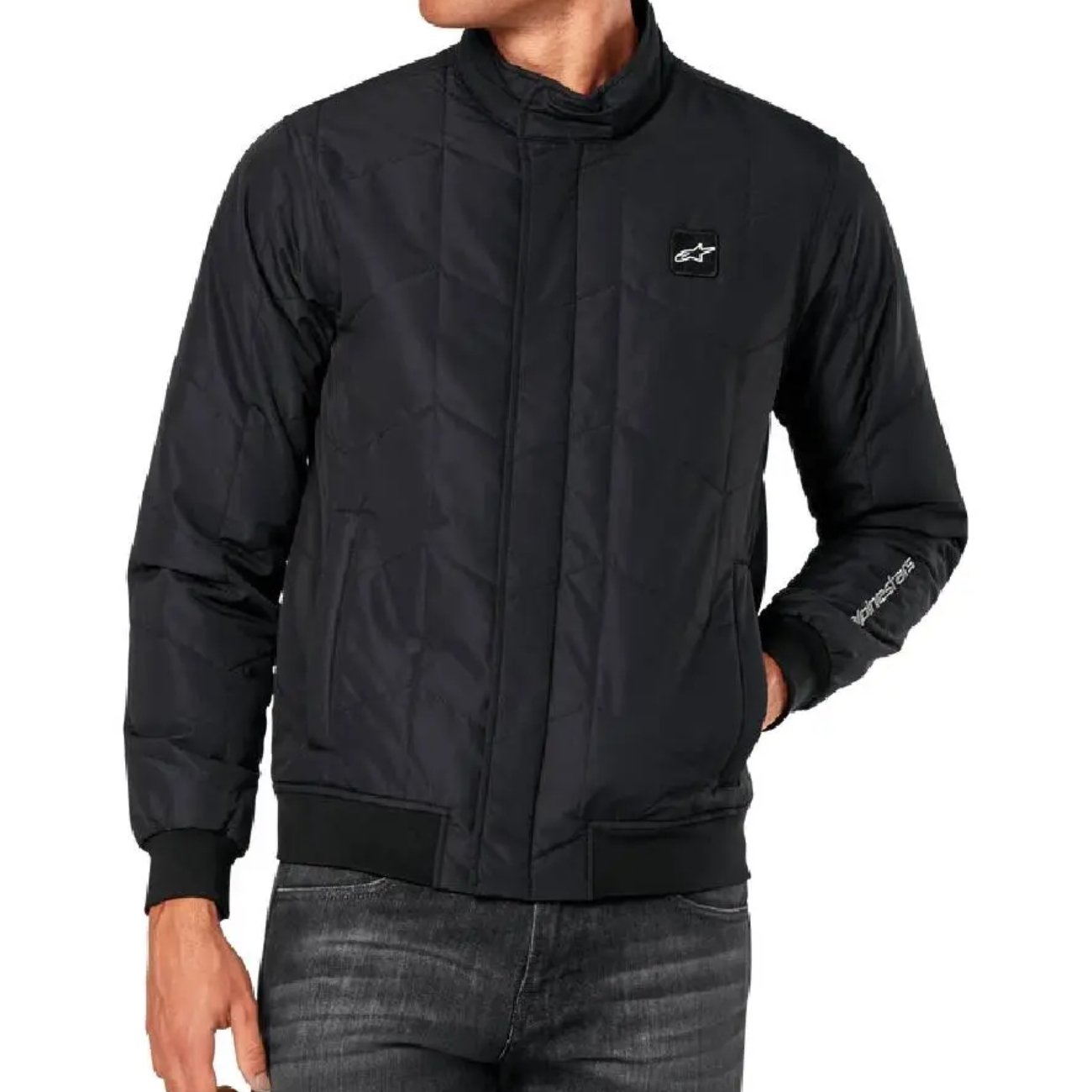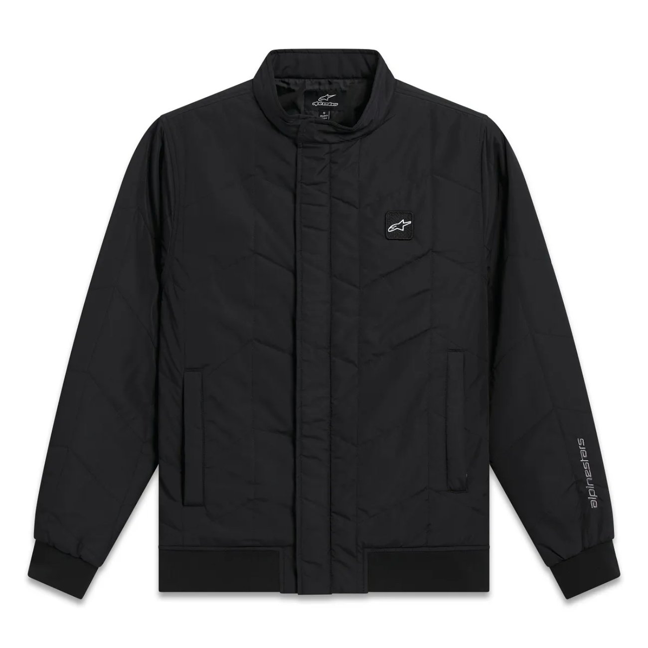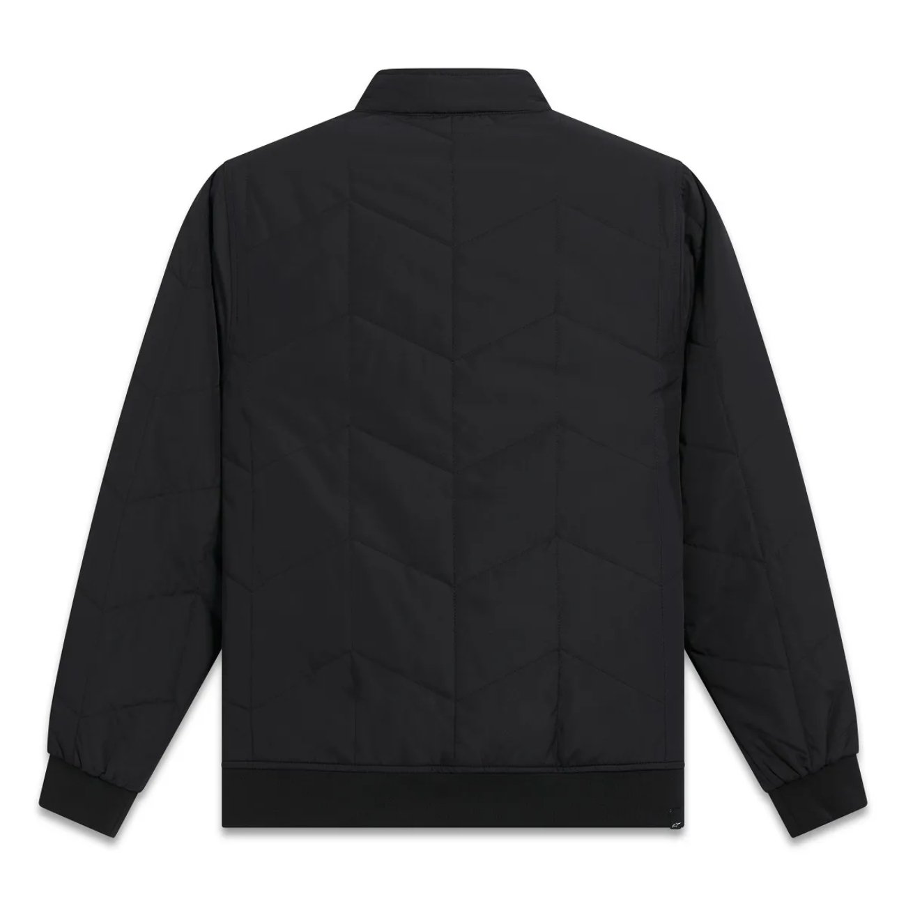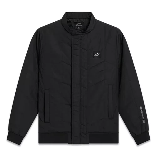 Os bolsos inferiores com zíper oferecem praticidade e segurança para guardar objetos pessoais. O padrão acolchoado em ângulo confere identidade única, reforçada pela etiqueta interna e detalhes da marca, como o patch de logo no peito e bordado na manga, que destacam a qualidade e o acabamento da peça.