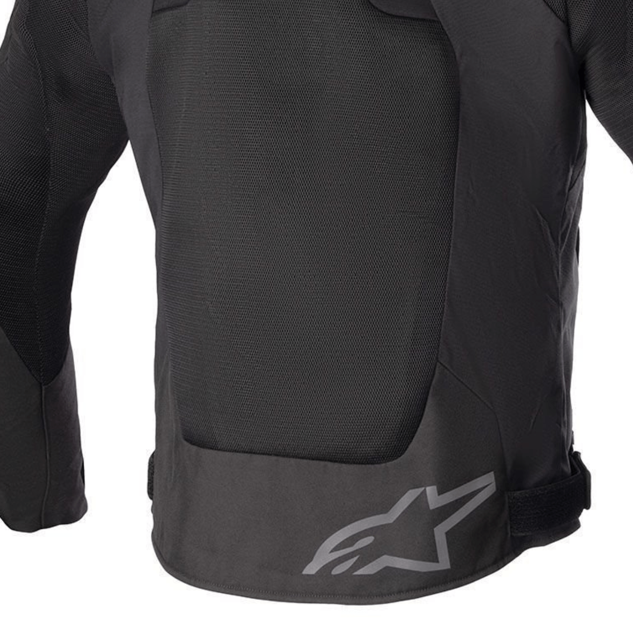 Reforços em politecido 450D nos braços, ombros e parte superior do tórax perfurado para fluxo de ar otimizado;