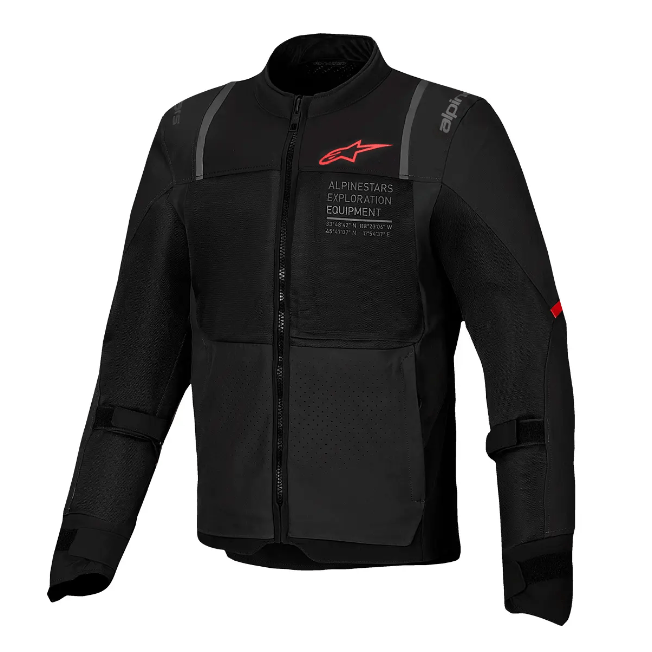 Estética elegante com acabamentos touring, películas refletivas e marca ALPINESTARS EXPLORATION EQUIPMENT;