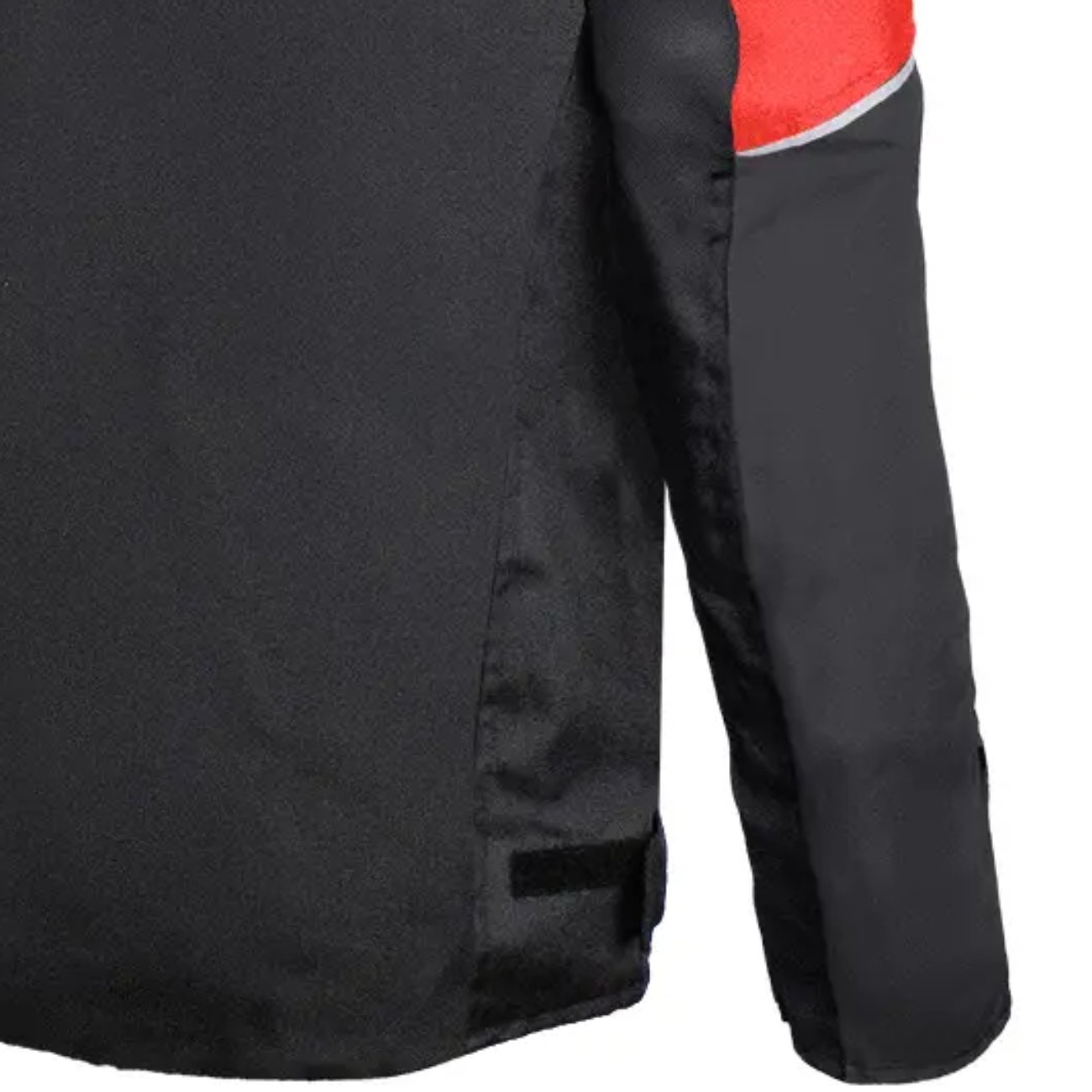 Ideal para dias quentes, a jaqueta conta com dois zíperes diagonais que vão do peito até o início das costas, promovendo circulação de ar contínua e reduzindo o arrasto do vento. Ajustes em velcro na gola, cintura e punho permitem uma regulagem precisa, aumentando o conforto em diferentes condições de pilotagem.