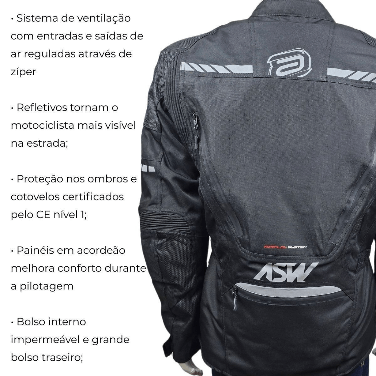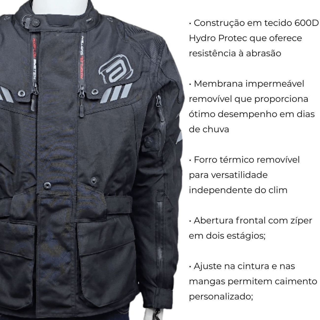 A Jaqueta ASW Pangea é a escolha ideal para motociclistas que buscam versatilidade e segurança em qualquer condição climática. Com forro térmico e membrana impermeável removíveis, adapta-se facilmente a dias quentes, frios ou chuvosos. O tecido 600D Hydro Protec garante alta resistência à abrasão, enquanto o design inteligente com painéis em acordeão, ajustes na cintura e mangas e ventilação regulável proporciona conforto e mobilidade durante a pilotagem. Detalhes refletivos aumentam a visibilidade, e múltiplos bolsos oferecem praticidade para uso diário ou viagens longas.