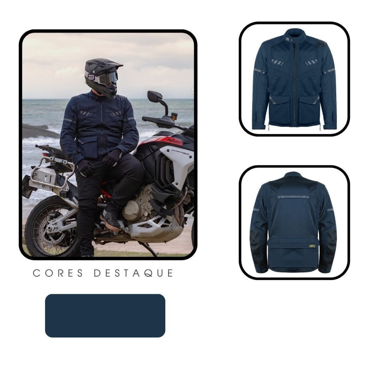 Equipada com proteções CE Nível 1 em ombros, cotovelos e costas feitas em viscoflex, a jaqueta garante segurança com flexibilidade e ventilação. Além disso, o corte pré-curvado e os múltiplos pontos de ajuste garantem um caimento preciso, com liberdade de movimento tanto em cima quanto fora da moto.