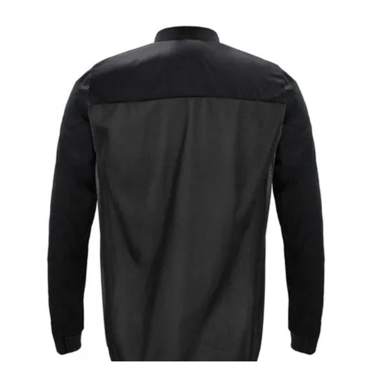 Os detalhes refletivos garantem maior segurança em condições de baixa luminosidade, enquanto o zíper frontal completo traz praticidade para vestir, ajustar e ventilar.