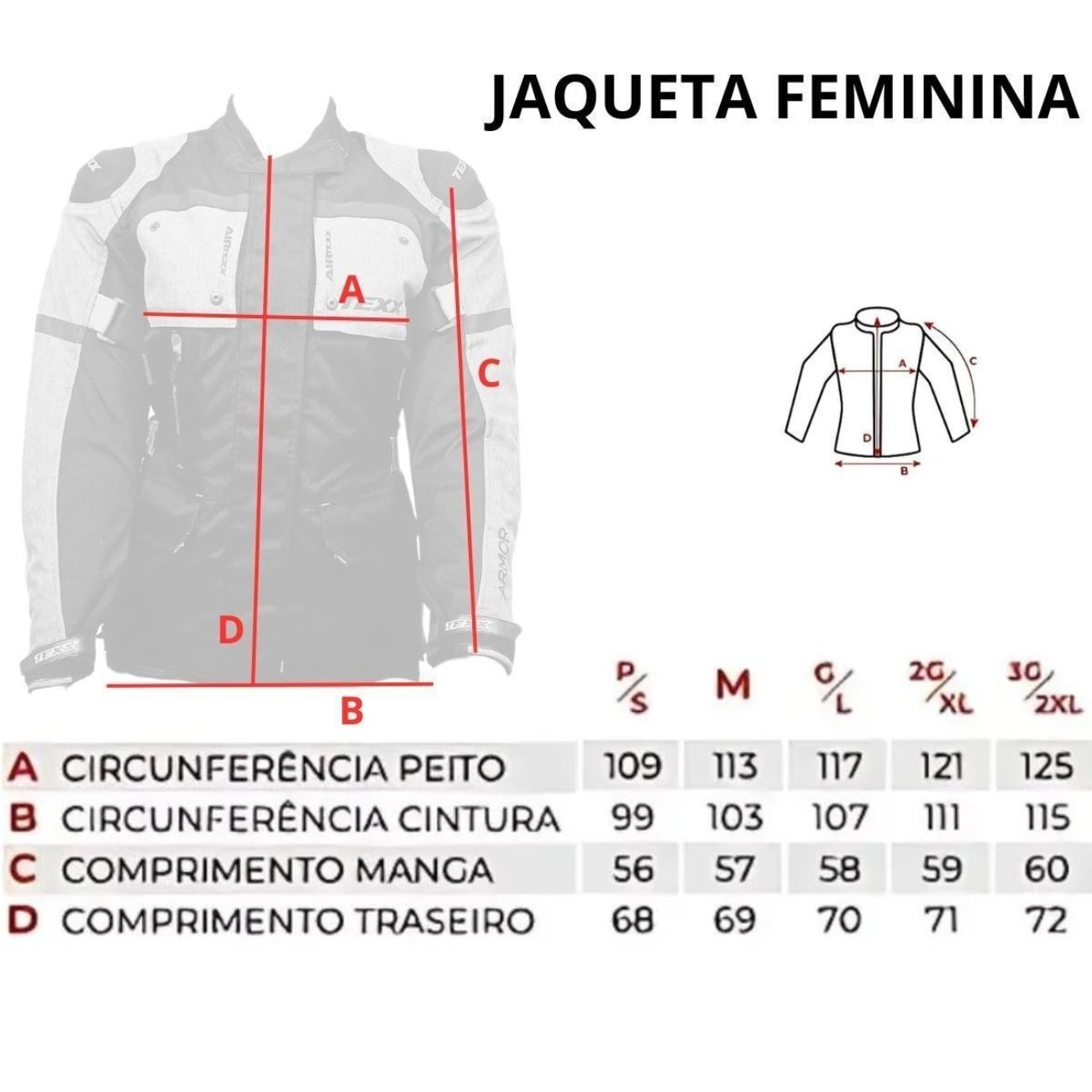 Conforto térmico e ventilação: Forro térmico integral removível e sistema AirTexx com zíperes impermeáveis.