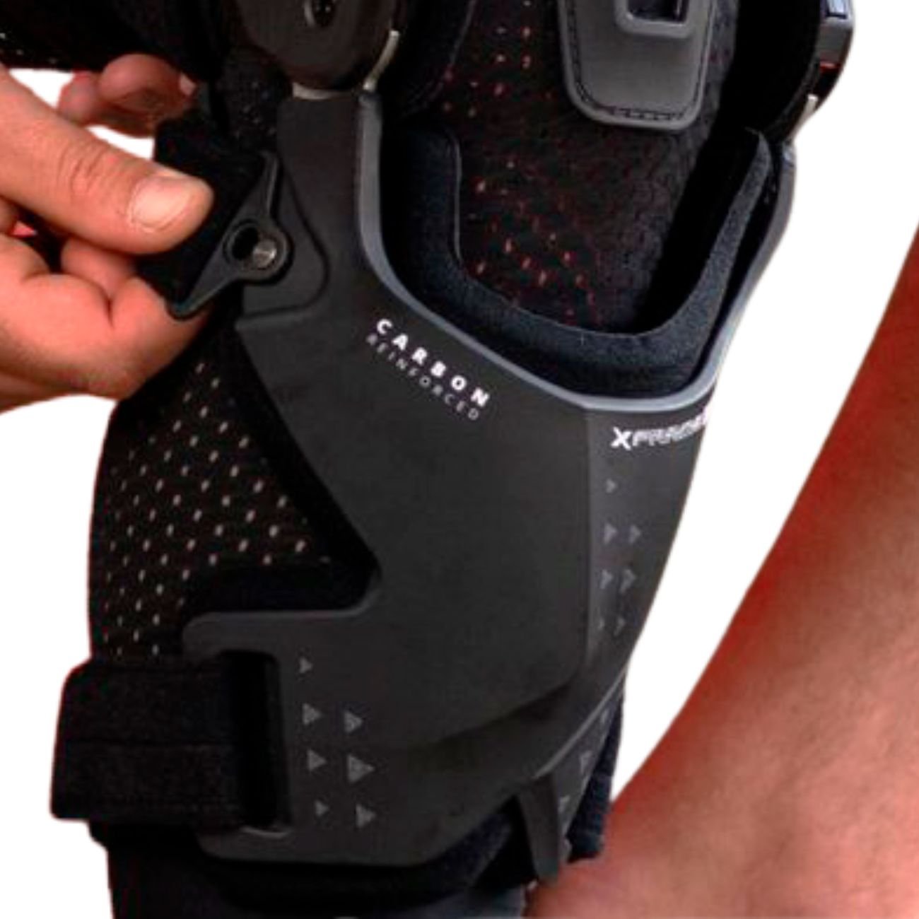 A Joelheira Leatt Hybrid X-Frame foi desenvolvida para pilotos que exigem o mais alto nível de proteção sem abrir mão da liberdade de movimento e conforto. Produzida com composto de carbono injetado, ela oferece extrema resistência com leveza. Seu design avançado inclui uma dobradiça interna 40% mais fina, proporcionando maior proximidade da moto e melhor controle, enquanto a dobradiça externa conta com engrenagens metálicas para reforço adicional, aumentando a durabilidade e estabilidade.