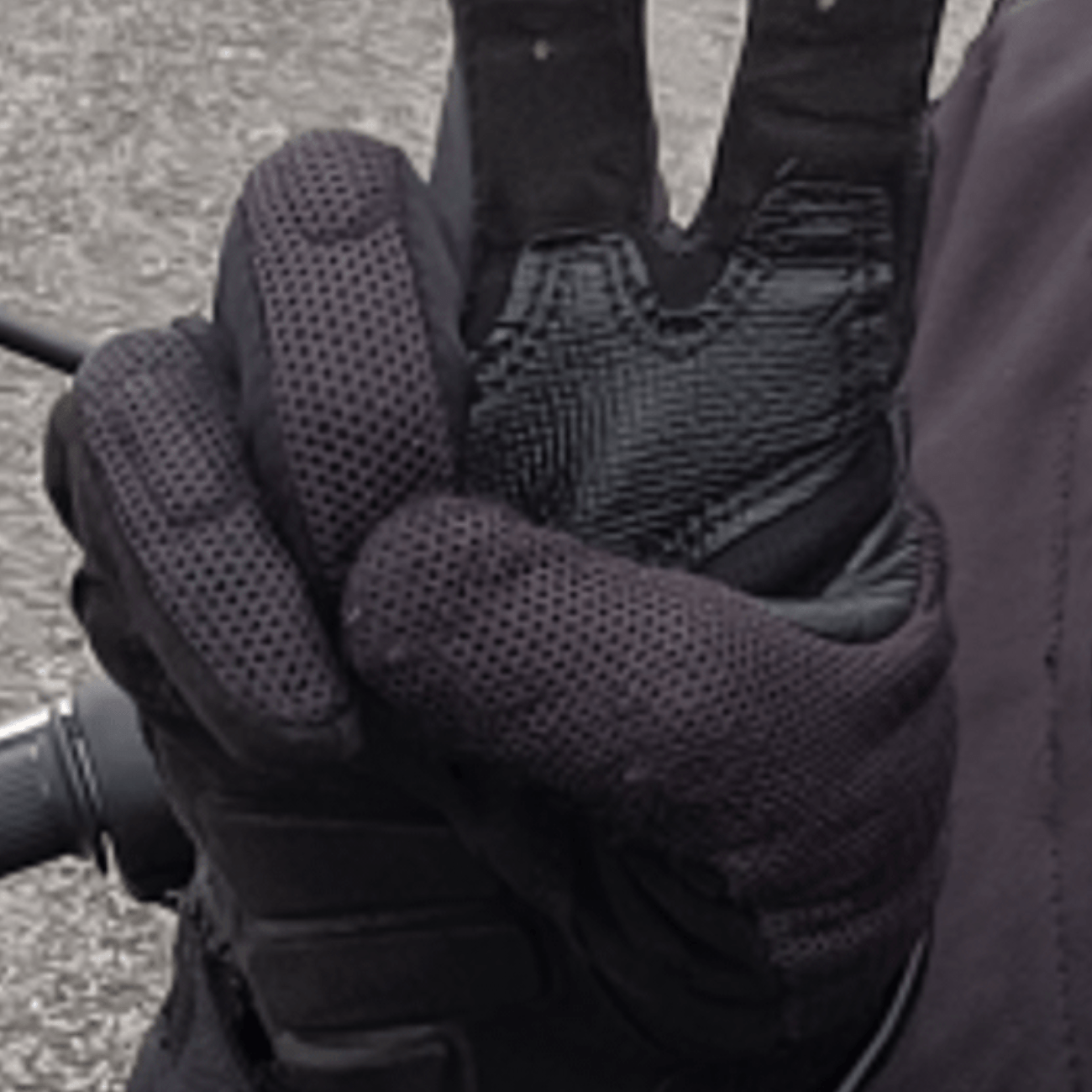 Com painéis de acordeão no dorso da mão e lycra estrategicamente posicionada, oferece excelente mobilidade dos dedos, enquanto o acolchoamento proporciona conforto extra nas áreas de maior impacto. A ponta do dedo indicador é compatível com touchscreen, facilitando o uso de smartphones e GPS sem a necessidade de retirar a luva.