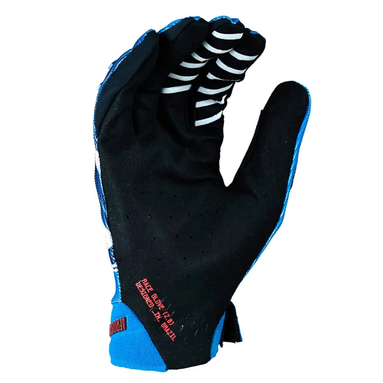 Sua construção em tecido de poliéster com elastano sublimado garante máxima elasticidade e caimento preciso às mãos, mesmo sob uso extremo. A palma perfurada em camurça sintética oferece excelente aderência e respirabilidade, mantendo as mãos secas e frescas durante a pilotagem.