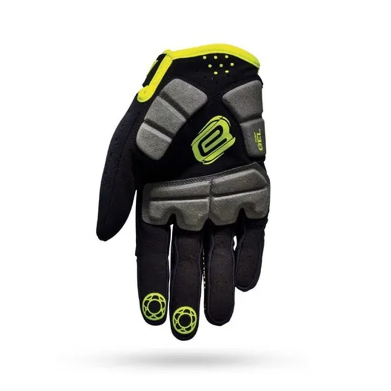Grips em silicone na ponta dos dedos que tem maior contato com os manetes, aumentando a capacidade de aderência com as manoplas e manetes da sua bike