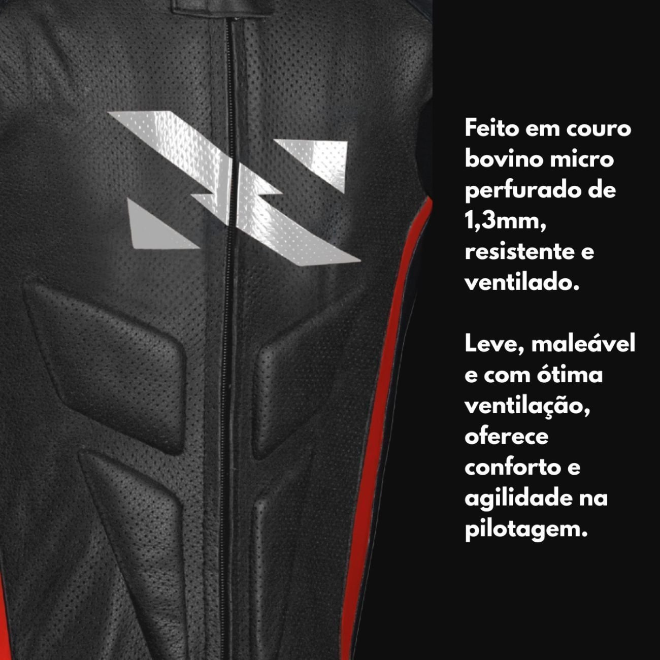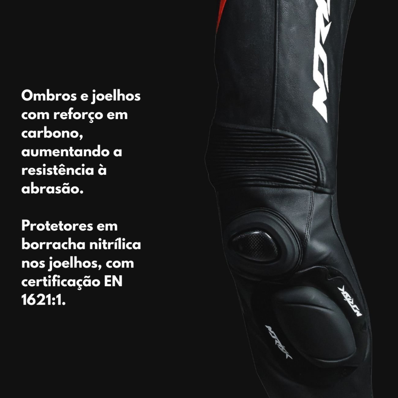 Confeccionado em couro bovino micro perfurado de 1,3 mm, o NR SS garante leveza, ventilação eficiente e maleabilidade, facilitando os movimentos sem abrir mão da resistência. Sua aerodinâmica aprimorada contribui para o melhor desempenho em corridas, sendo uma opção de excelente custo-benefício para pilotos profissionais e entusiastas.