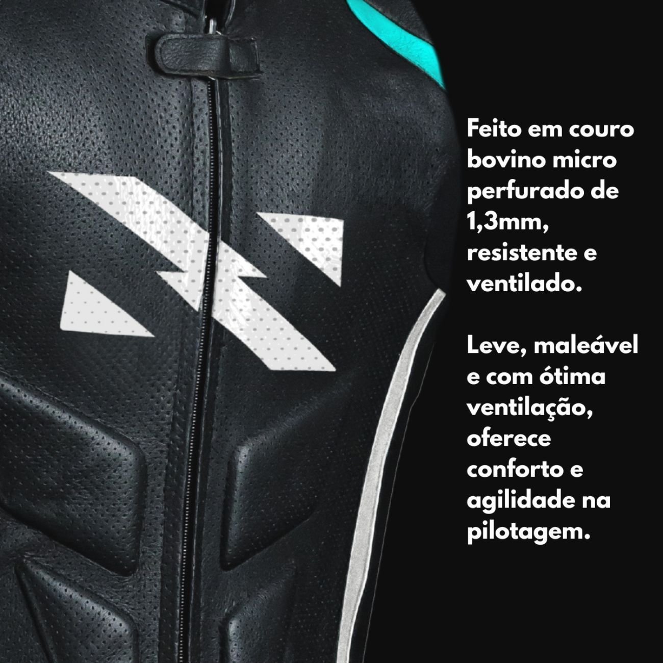 Confeccionado em couro bovino micro perfurado de 1,3 mm, o NR SS garante leveza, ventilação eficiente e maleabilidade, facilitando os movimentos sem abrir mão da resistência. Sua aerodinâmica aprimorada contribui para o melhor desempenho em corridas, sendo uma opção de excelente custo-benefício para pilotos profissionais e entusiastas.