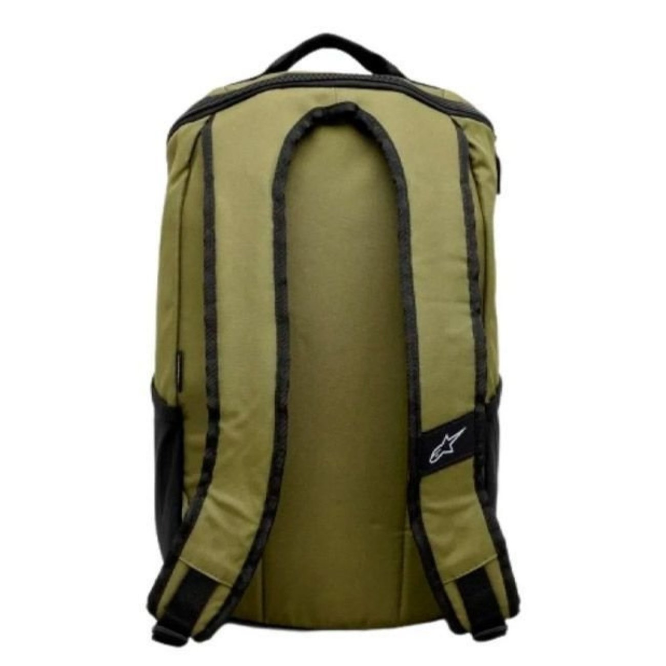 Cor: Verde militar, com logo Alpinestars impresso, unindo estilo e funcionalidade.