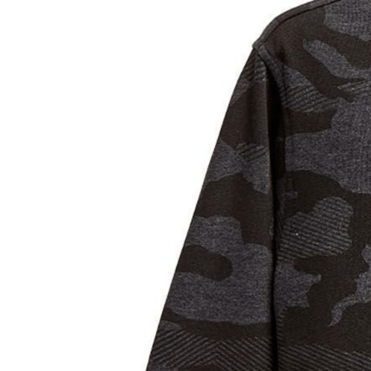 Design: Padrão camuflado em blocos nas cores cinza, preto e branco
