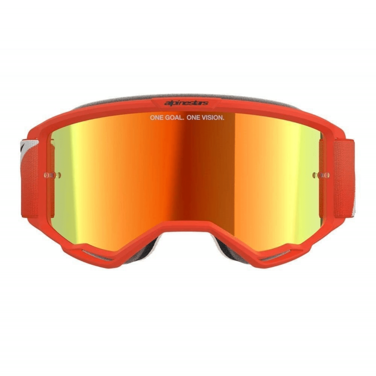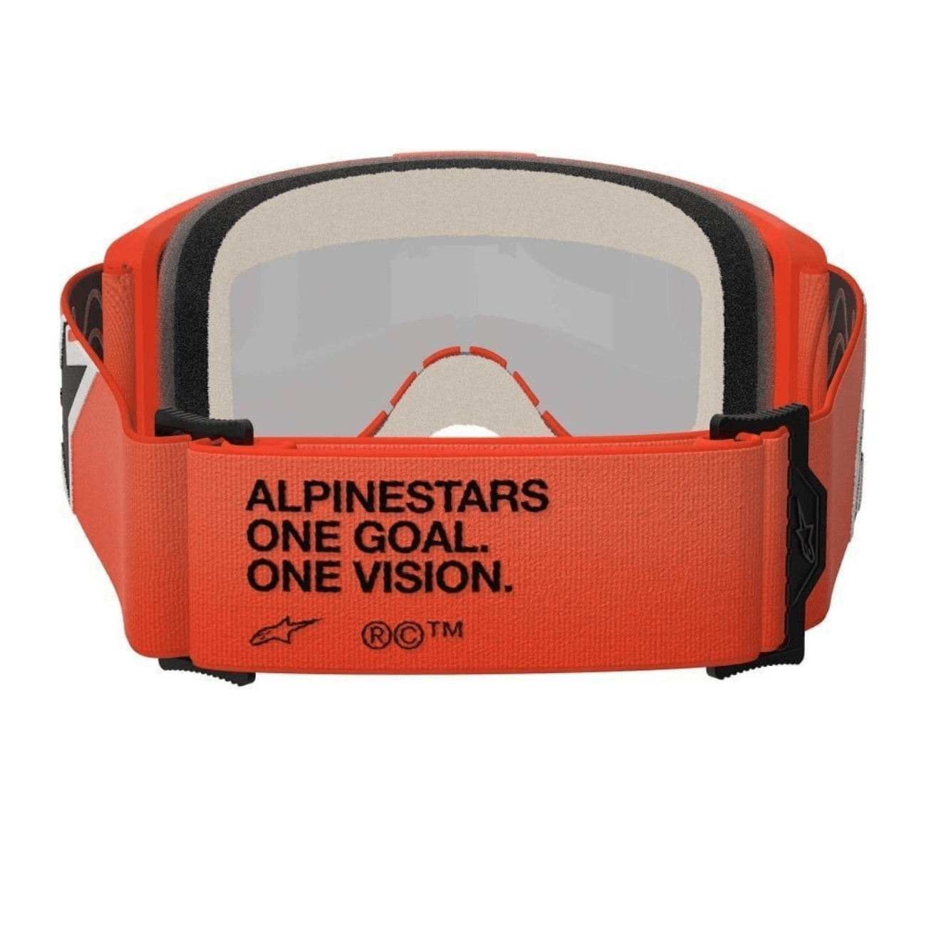 Equipados com lente de policarbonato com revestimento antiembaçante e proteção 100% UVA, proporcionam visão clara e segura mesmo em condições adversas. A espuma facial de duas camadas, com 17 mm de espessura, oferece conforto superior e vedação eficaz contra poeira e suor. O amplo campo de visão é compatível com o sistema WIDE-VISION Roll-Off, ampliando a visão periférica e garantindo melhor desempenho durante a pilotagem. A correia de 45 mm com silicone mantém os óculos firmemente posicionados no capacete, sem deslizar.