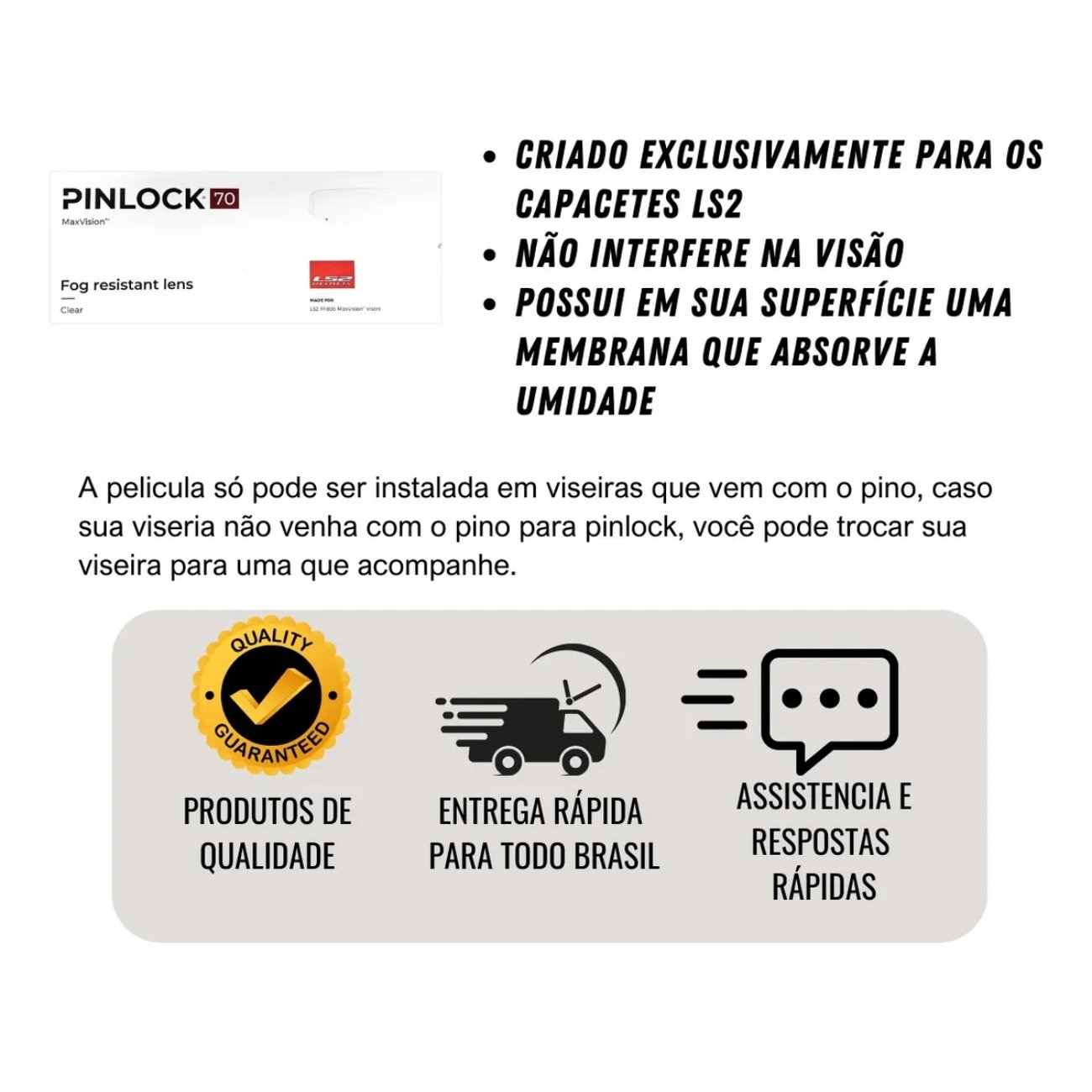 Importante: só pode ser instalado em viseiras que possuam os pinos laterais. Caso sua viseira não tenha, será necessário substituí-la por uma que seja compatível com Pinlock.