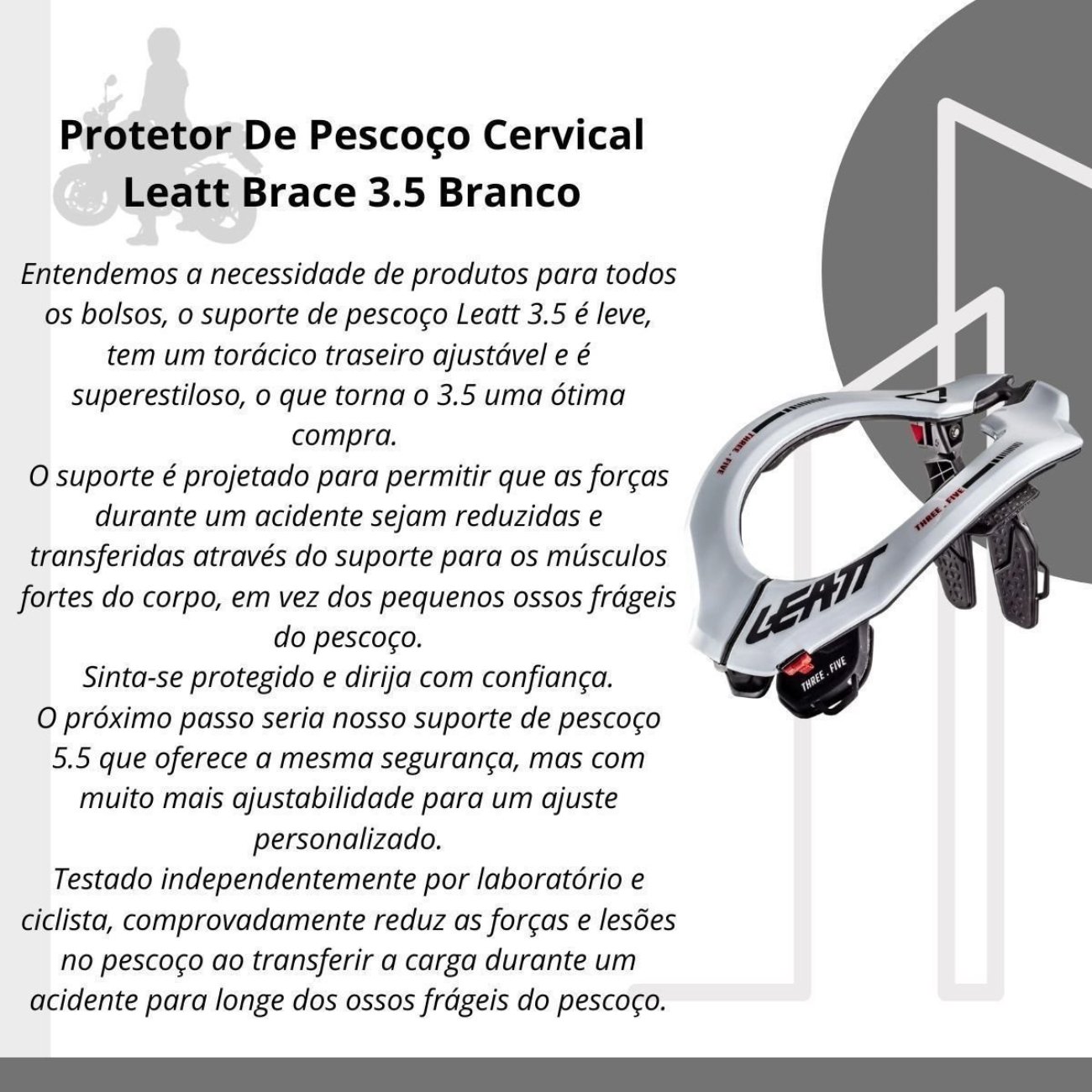 O Leatt Brace 3.5 é um protetor cervical desenvolvido para oferecer proteção comprovada, conforto e ótimo custo-benefício.