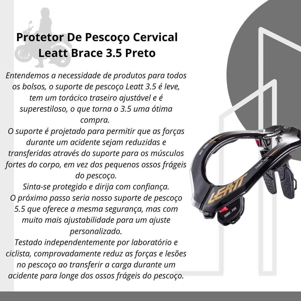 Projetado para oferecer máxima proteção com leveza e estilo, o Leatt Brace 3.5 é uma escolha inteligente para pilotos que não abrem mão da segurança, mas buscam um ótimo valor. Com estrutura eficiente na dissipação de forças de impacto, o protetor redireciona a energia do acidente para longe dos frágeis ossos do pescoço, reduzindo drasticamente o risco de lesões cervicais.