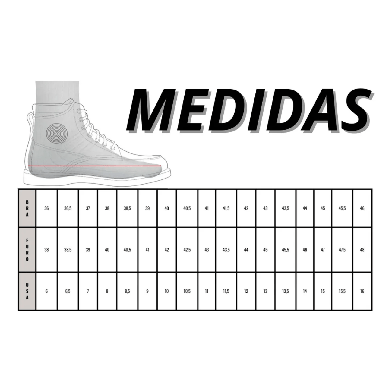 Sistema de fechamento tradicional com cadarço e tira lateral em velcro com TPR ajustável