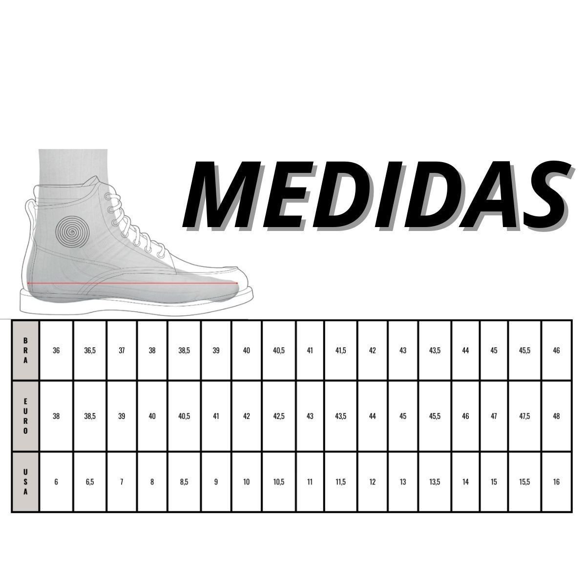 A sola de borracha de nova geração oferece aderência superior, durabilidade e absorção de impactos, enquanto a palmilha anatômica substituível de EVA com forro Lycra proporciona suporte e conforto prolongados. A entressola possui amortecimento no calcanhar para proteção extra.