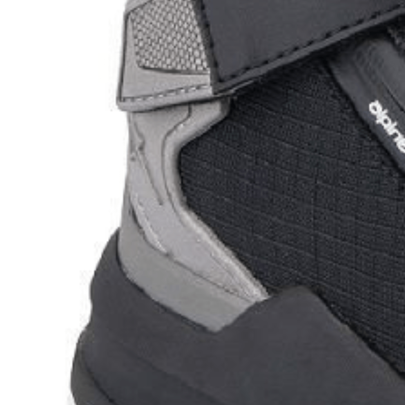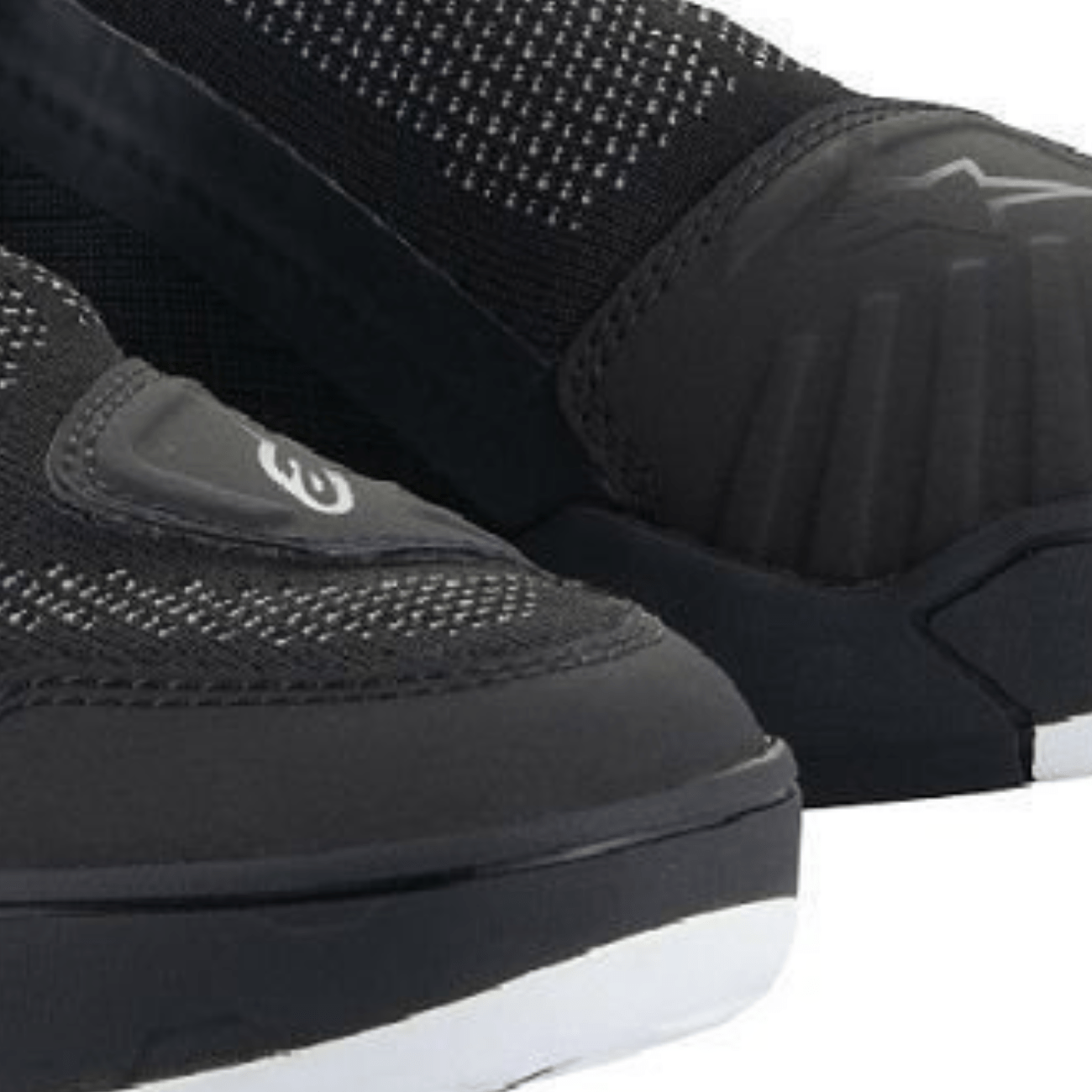Sola exclusiva de borracha de dupla densidade com paredes protetoras frontais e aderência e formato projetados especificamente para motociclistas.