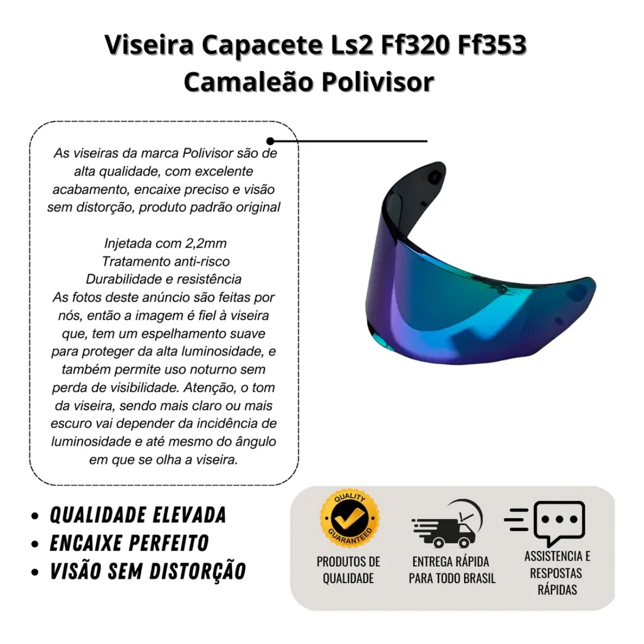 A Viseira Polivisor é a escolha ideal para quem busca reposição com qualidade e estilo para capacetes LS2. Compatível com os modelos FF320 (com óculos solar interno), FF353 e FF800, ela oferece encaixe preciso, fácil instalação e excelente acabamento.