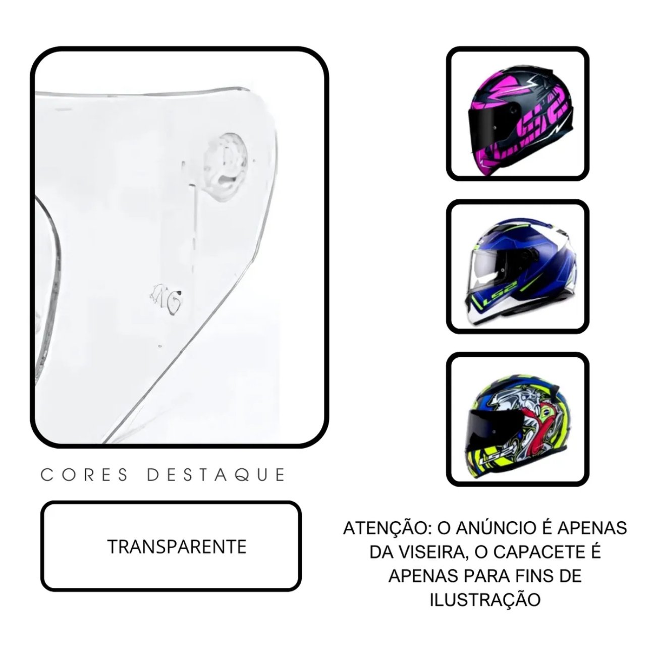 Importante: o anúncio refere-se somente à viseira. Capacetes mostrados nas imagens são meramente ilustrativos para referência de compatibilidade.