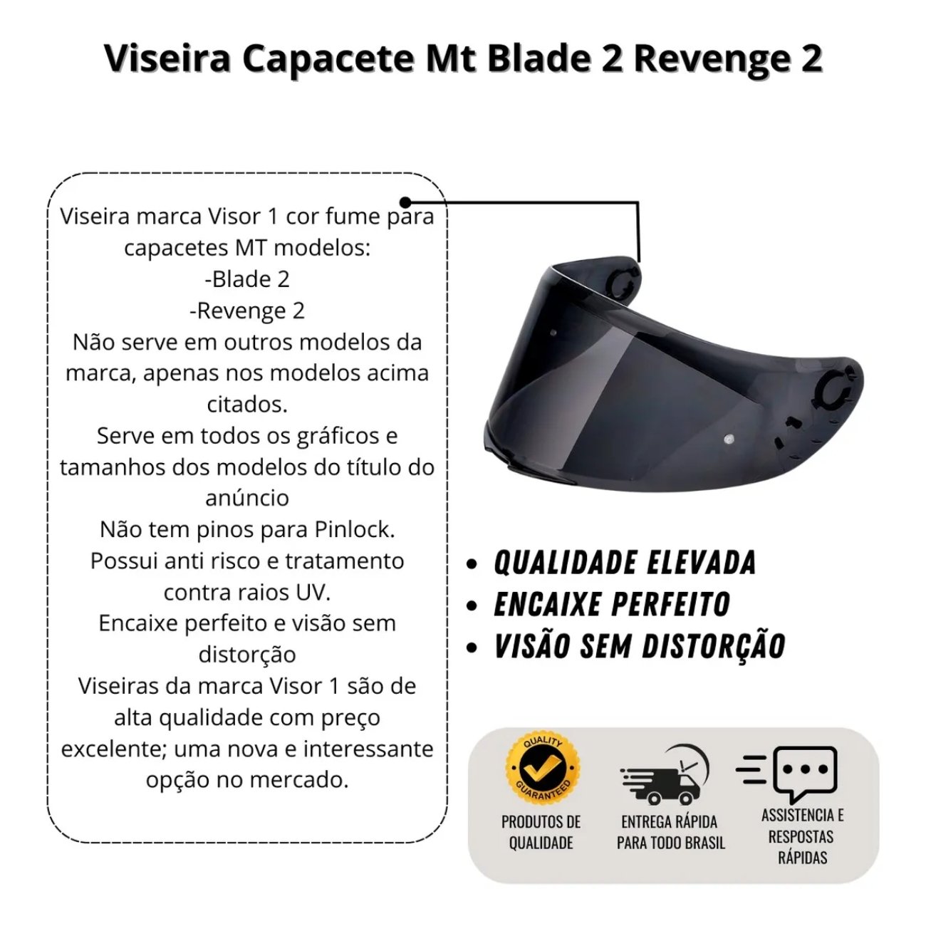 Compatibilidade: Apenas para capacetes MT Blade 2 e MT Revenge 2