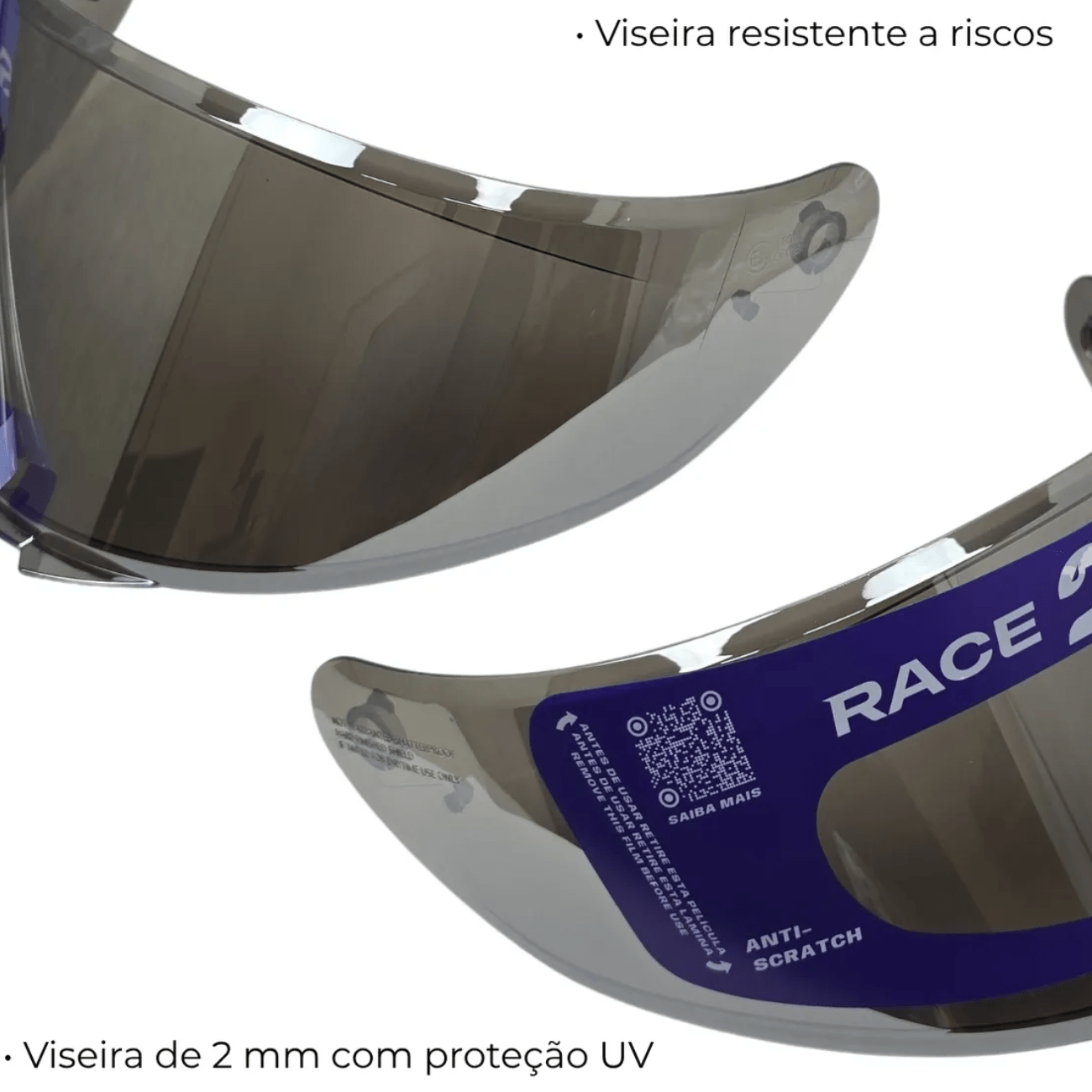 Com 2 mm de espessura, a viseira possui proteção UV e é resistente a riscos, assegurando uma visão clara e proteção eficaz durante a pilotagem. Este item é exclusivo para o modelo Race Tech HIT e não é compatível com outros modelos da linha Race Tech.