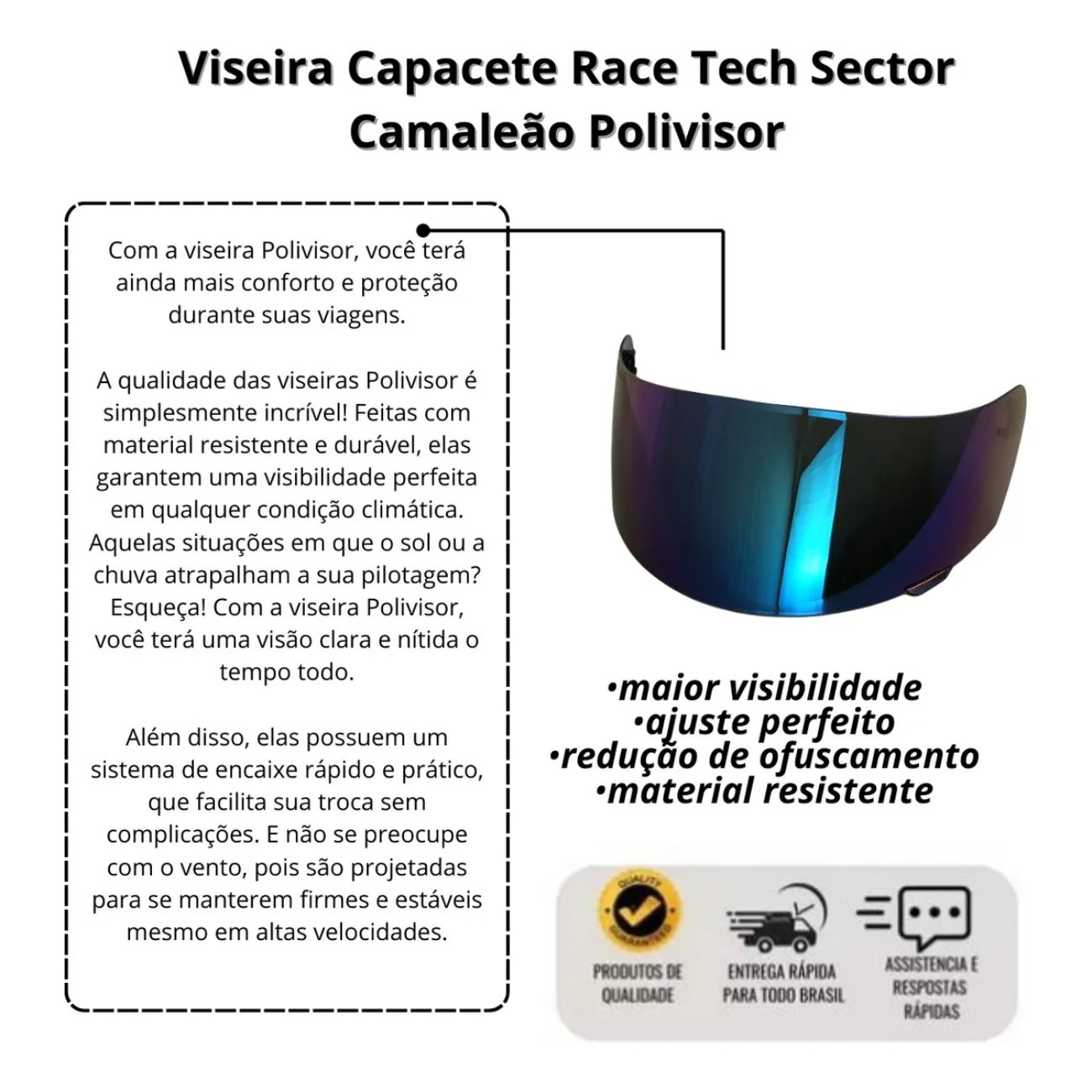 Viseira Polivisor Camaleão para Capacete Race Tech Sector – Alta Qualidade, Encaixe Perfeito e Proteção UV