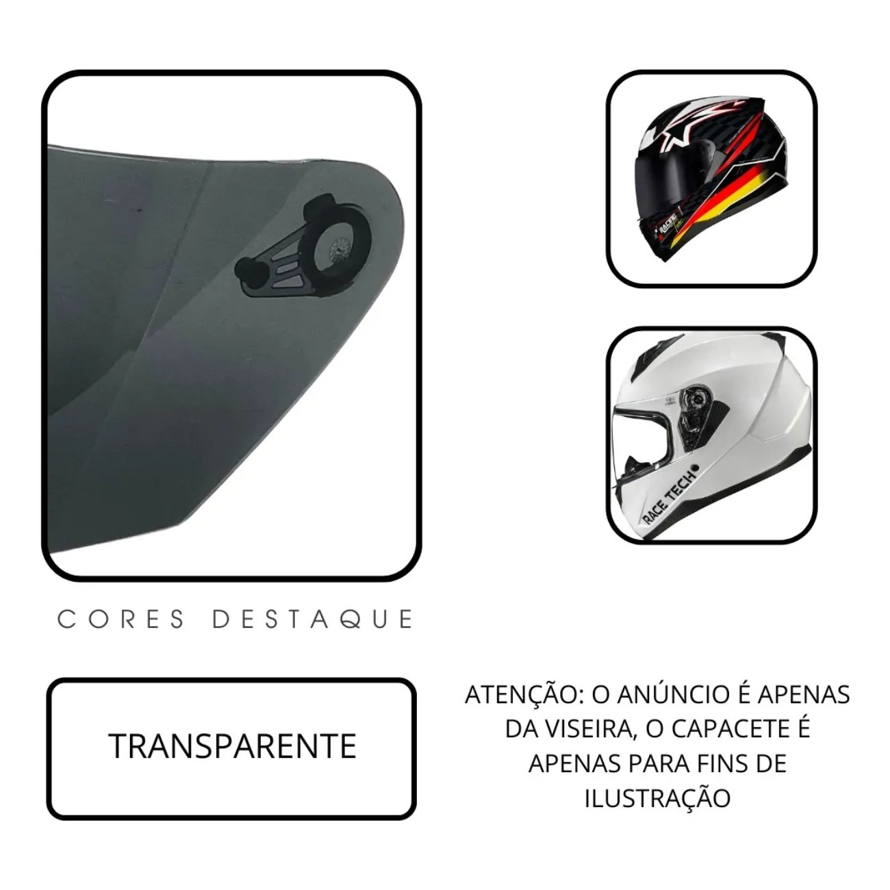 ⚠️ Confira o modelo do seu capacete antes da compra. Esta viseira é compatível somente com o Race Tech Sector.