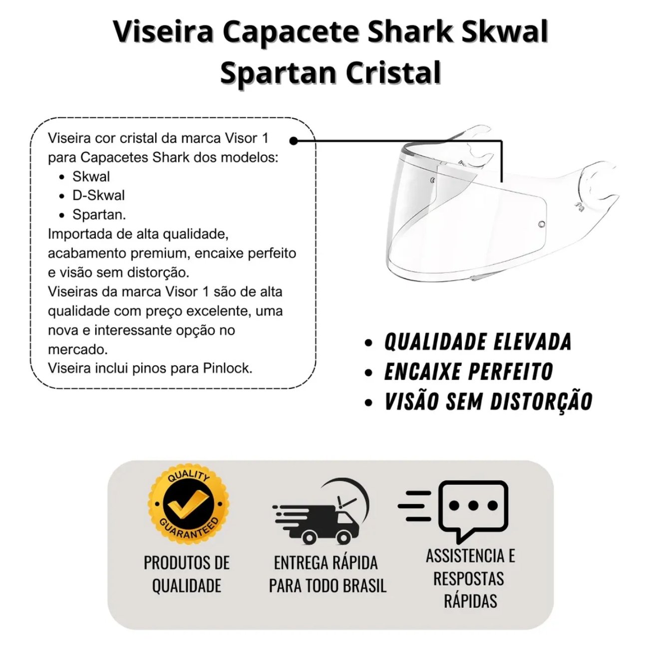 Viseira Cristal Visor 1 – Compatível com Capacetes Shark Skwal, D-Skwal e Spartan