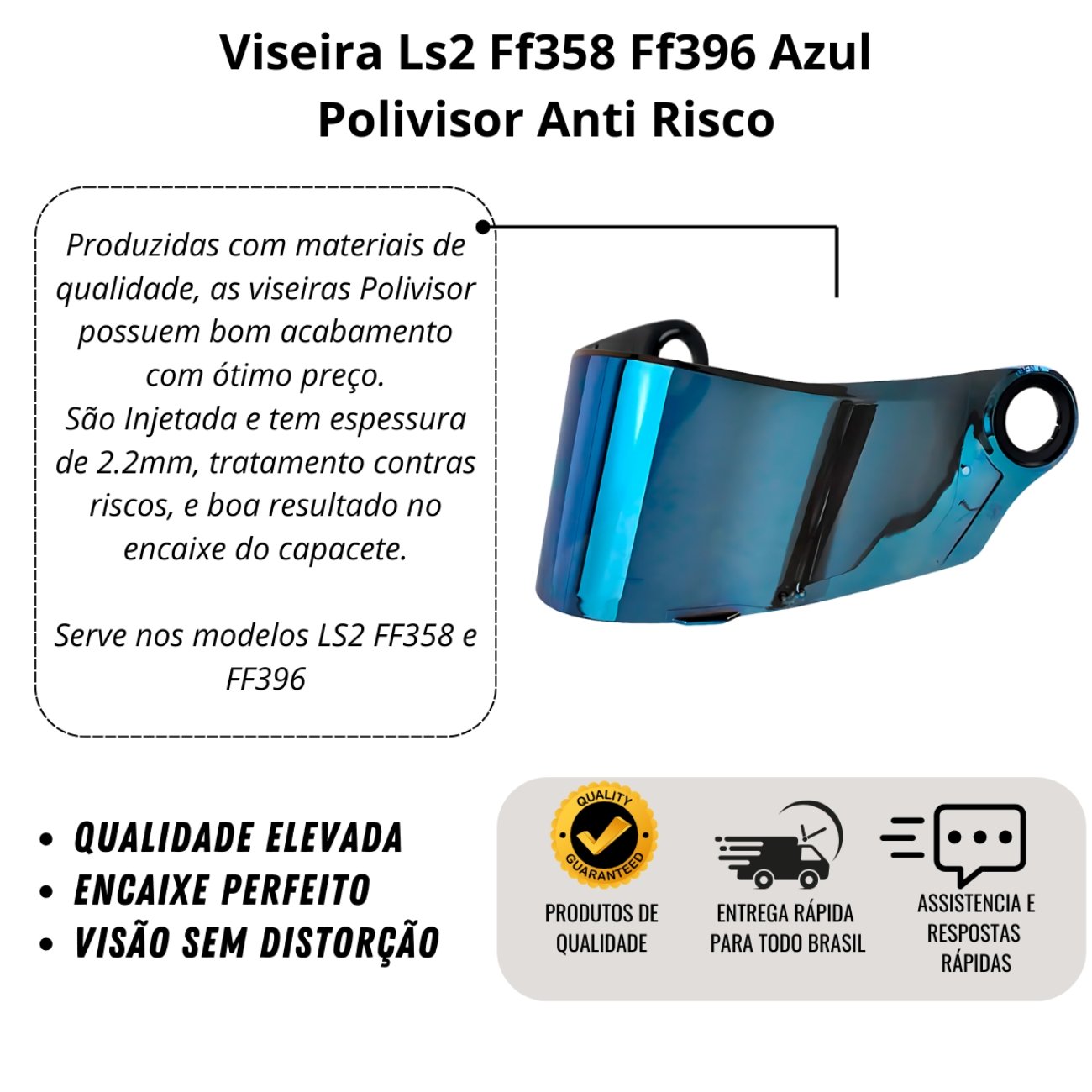 Viseira Azul Iridium Polivisor – Compatível com Capacetes LS2 FF358 e FF396